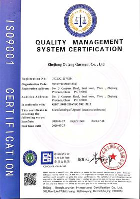 浙江歐騰服飾有限公司位于世界小商品之都-義烏。創(chuàng)立于2015年,是一家專業(yè)生產(chǎn)無縫針織運(yùn)動(dòng)服飾和內(nèi)衣的工貿(mào)一體企業(yè),擁有自主出口權(quán)。 工廠的占地面積約16000平方米 ,引進(jìn)了大型圣東尼、高騰等多種先進(jìn)的制衣設(shè)備300余臺。月產(chǎn)能可達(dá)90萬件。 歐騰服飾每年投入近百萬資金打樣開發(fā)新產(chǎn)品,有著一支高素質(zhì)設(shè)計(jì)、技術(shù)員工隊(duì)伍。工廠先后通過了ISO 9001質(zhì)量管理體系認(rèn)證、BSCI認(rèn)證、GRS認(rèn)證、OEKO-TEX國際生態(tài)紡織品認(rèn)證等多項(xiàng)專利檢測報(bào)告??商峁㎡EM&ODM服務(wù)。歐騰服飾以一套完整、科學(xué)的質(zhì)量管理體系,生產(chǎn)的服裝從原材料紗線到成衣,質(zhì)量完全能夠滿足國內(nèi)、國際質(zhì)量要求。獲得了客戶一致好評。工廠先后獲得省科技型企業(yè)、國家高新企業(yè)、義烏市誠信講信用單位、規(guī)上企業(yè)、信用AAA級等榮譽(yù)。